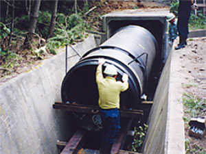 スパイラルワインディング成形によって作られる高耐圧ポリエチレン管です。軟弱地盤や急傾斜地の配管をはじめ地下排水管、樋管、管更生など広く用いられています。