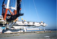 陸地から遠く離れたところや、台風の多いところ、船の出入りの多いところに使用されます。海底に沈める事によりフェンスの損傷を防ぎ、また短時間に沈下、浮上できるので、船舶の出入りに便利です。   レンタル品もございます。