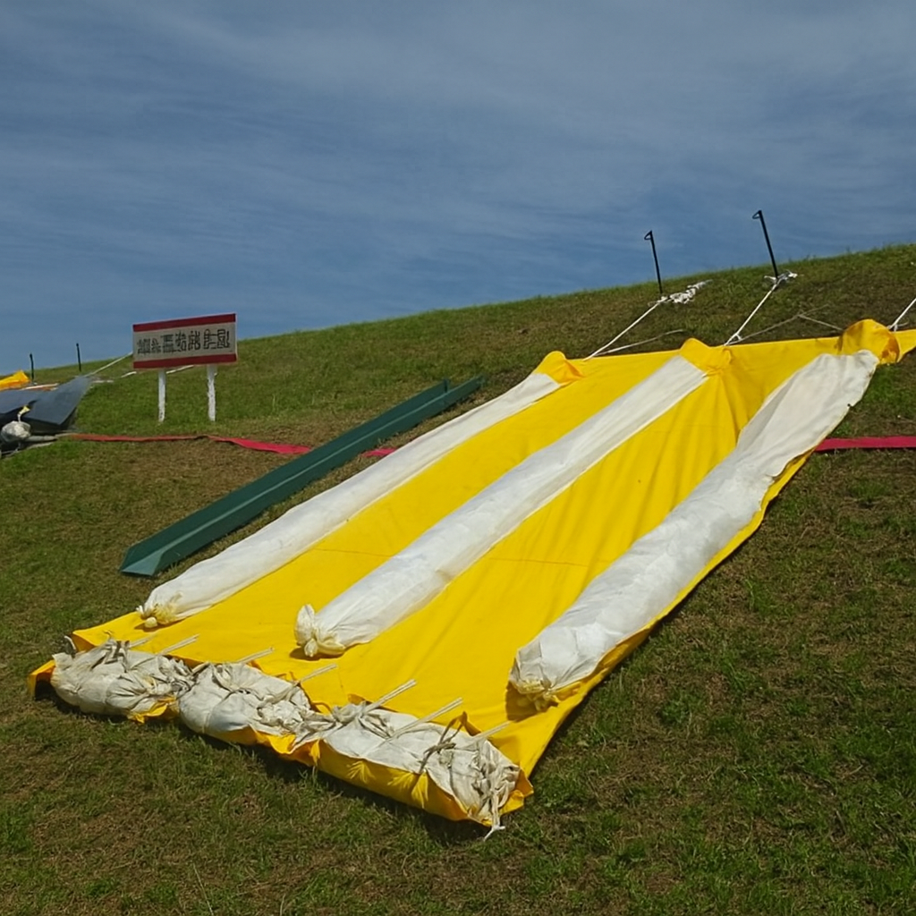 スイボーT型マットで堤防決壊を未然に防ぎます。